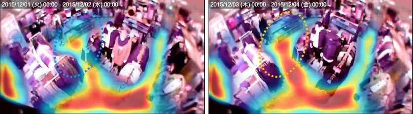 こうした分析では、弊社の強みである画像認識技術がとても活きてきます。またその他にも、店舗のどのエリアを通行・滞在したかが分かる導線分析も行えます。