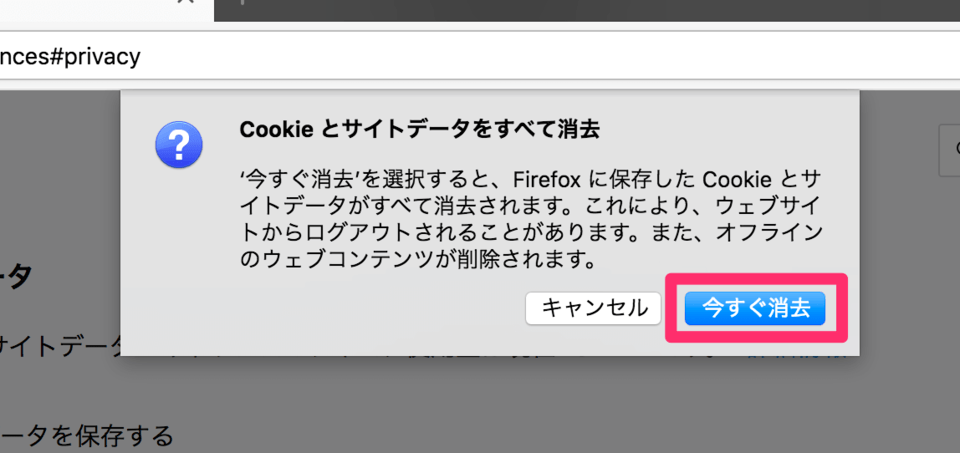 4.「Cookieと他のサイトデータ」をチェックして「データを消去」をクリック