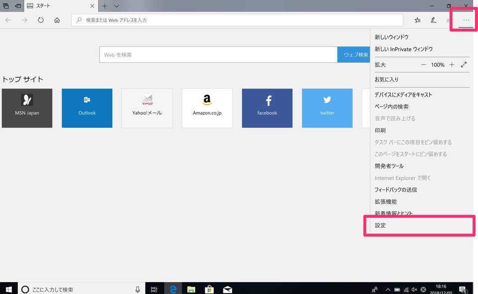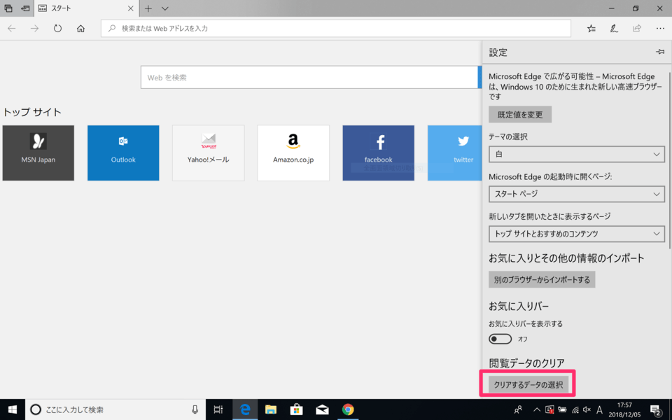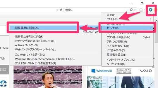- 「歯車」>「セーフティ」>「閲覧履歴の削除」をクリック