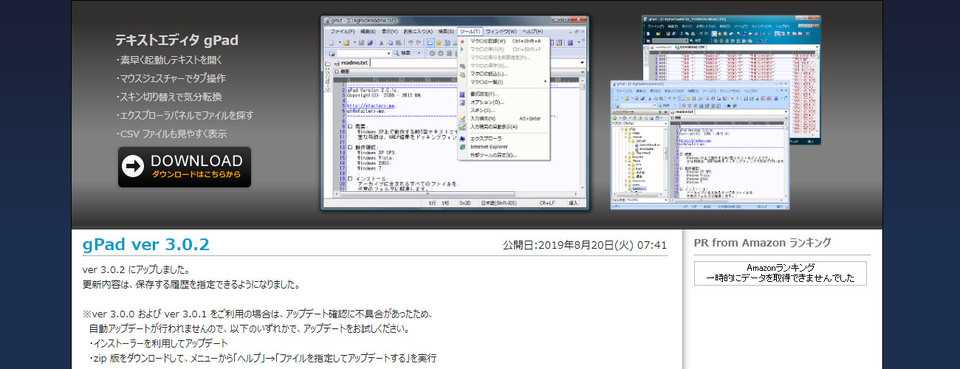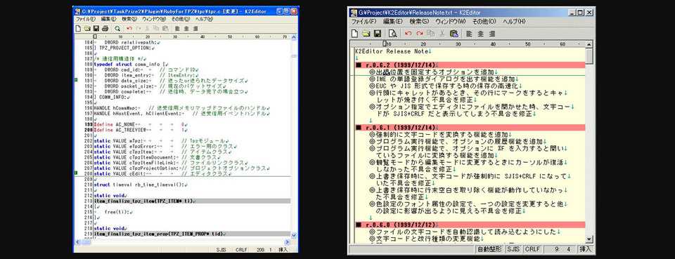 • シンプルながらも非常に高機能なWindows用テキストエディタ