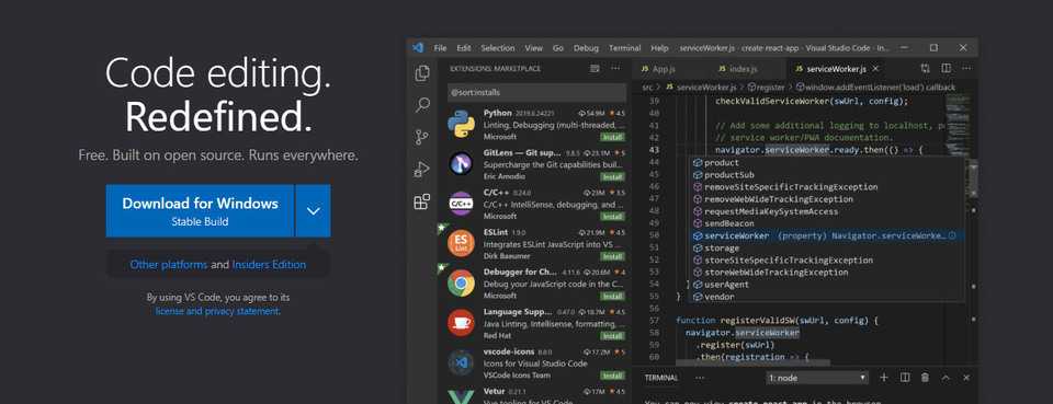 Visual Studio Code(ビジュアル スタジオ コード)は、マイクロソフトが開発したオープンソースのテキストエディタです。VSCodeと略して呼称されるのが一般的であり、提供開始が2015年とかなり新しい部類のテキストエディタです。