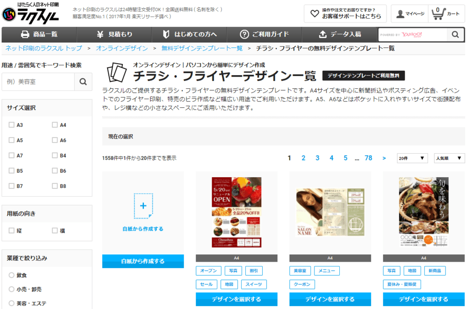 最後に、チラシのテンプレートをダウンロードしたり作成したりできるサービスを紹介します。
