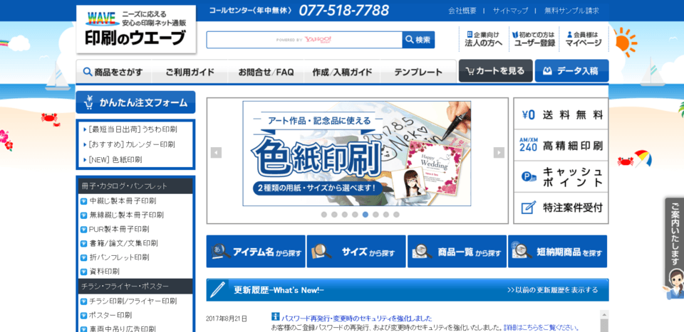 印刷のウエーブは、無料でテンプレートを注文できるサービスで、もちろん印刷、配送も対応可能です。高精細印刷を標準搭載しており、モアレ、ロゼッタパターンといった印刷物でよく起きてしまう現象を解消するソリューションもあります。