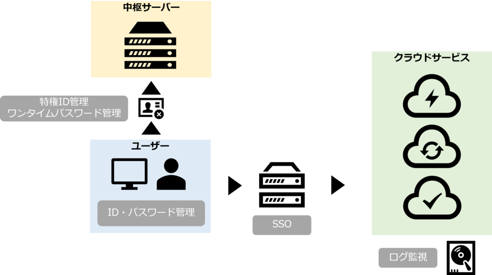 特権ID管理は、システム管理者が使う高権限アカウントの利用を制御・記録する仕組みです。操作ログの取得や、利用時間・対象機器の制限などが可能です。