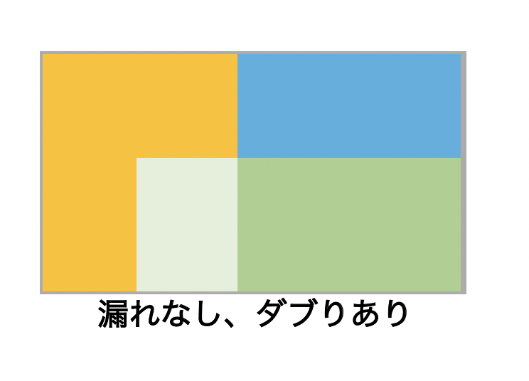 次に、全体の要素に漏れはないが重複、いわゆるダブりが生じているケースです。