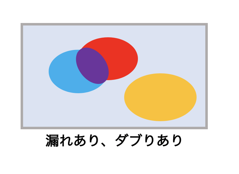 パターンとしては「漏れがあるがダブりはない」「漏れはないがダブりがある」「漏れもダブりも両方ある」の3つの状態があります。