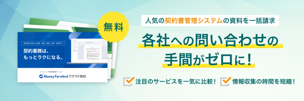 契約書の必要性、訂正・割印・印紙など作成のポイント、袋とじの方法や郵送のルールから契約書のスマートな管理方法まで「契約書に関するすべてのこと」を徹底解説したこちらの記事もぜひご覧ください。