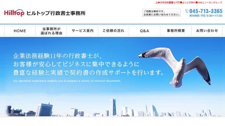 業務委託契約書作成を代行するサービスを利用するという手もあります。さまざまな企業(個人事業を含む)や団体が業務委託契約書の作成代行サービスを提供していますが、ここでは「ヒルトップ行政書士事務所」の提供しているサービスを紹介します。
