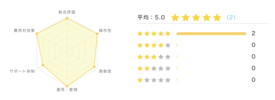 初期費用が似たサービスに比べて、全然かかりませんでした。費用がかからないからと言ってサービスの質が悪いといったこともなく、むしろ質は高いと思います。運用担当のエンジニアを置く必要がなく運用も簡単なので、オススメのサービスです。