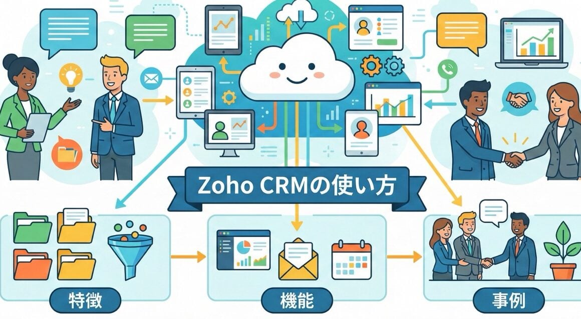 Zoho CRMの特徴と主要な使い方、機能や導入事例をいくつか紹介します。