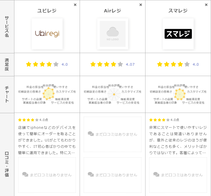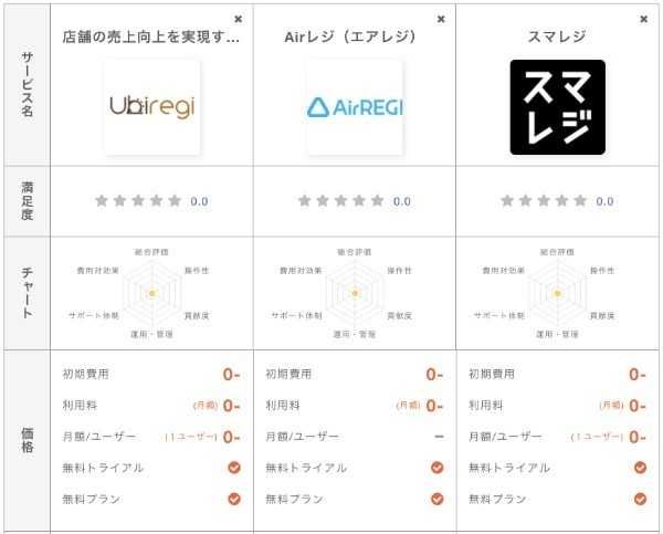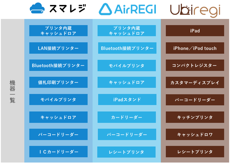 | 導入数/主な利用企業 | スマレジ | エアレジ | ユビレジ |