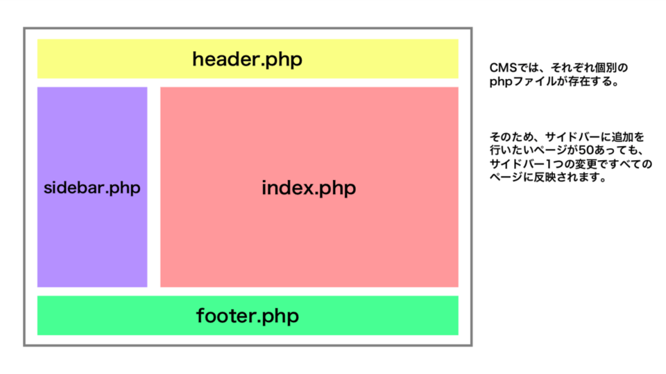 よって、サイドバーに変更を行いたい場合でも、すべてのページを変更する必要はなく「sidebar.php」の変更のみで作業が完了します。