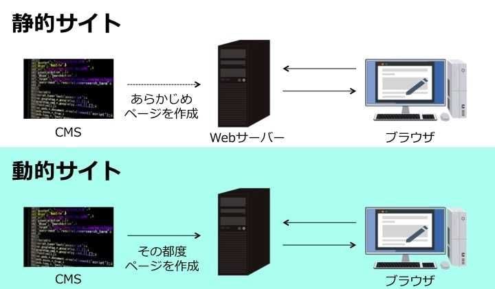CMSでのページ表示がやや遅い理由の一つがこれですが、「動的サイト」に対して「静的HTML」とは、物理的に存在する、変更されないHTMLページを指します。