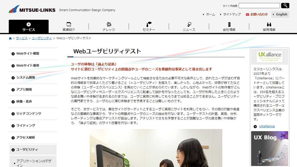 Webユーザビリティテストは、ミツエーリンクスが提供するWebユーザーテストで、ターゲットユーザーに実際にWebサイトを利用してもらい、行動・発言などから、サイトの問題点やユーザーのニーズの抽出を行ってくれるサービスです。