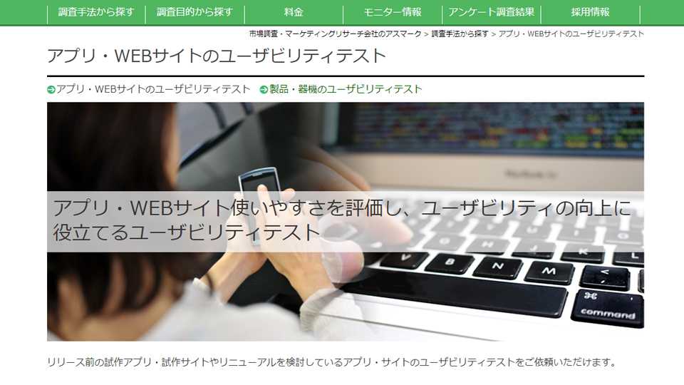アスマークは、アプリやWebサイトの使いやすさを評価し、ユーザビリティの向上に役立てるユーザーテストです。