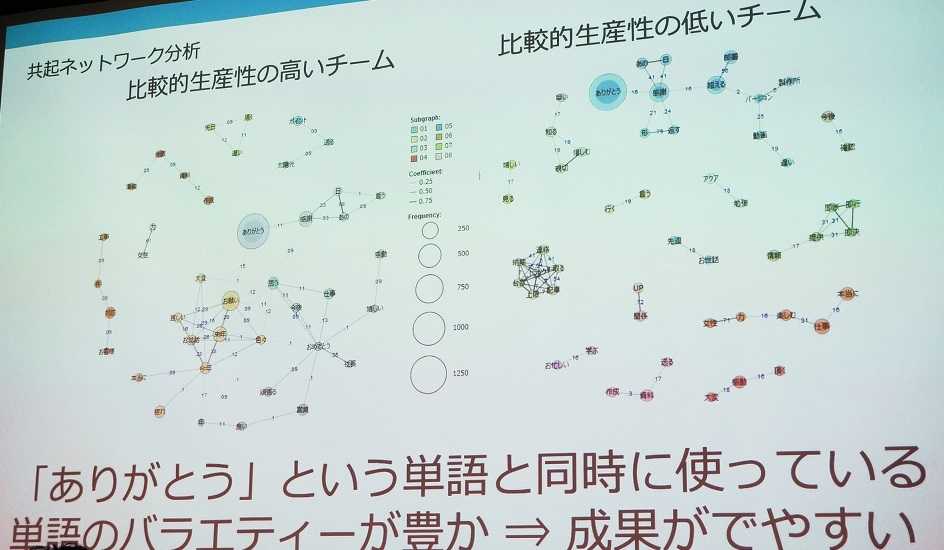 鈴木:はい。感謝の気持ちを伝えるツールですので、「ありがとう」という言葉が当然多くなります。そして「ありがとう」という言葉に紐づく語彙が多ければ多いほど、生産性が高いという結果が出ています。生産性が高いというのは、エンゲージメント・サーベイ(Q12・キュートゥエルブ)から計測した結果です。