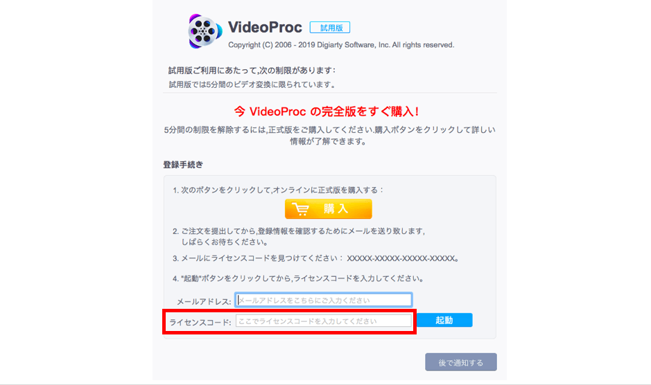 3)ソフト起動後、登録画面にご自身のメールアドレスとライセンスコードを入力