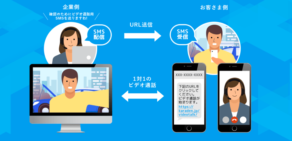「ビデオトーク」は高い開封率を誇るSMSを利用して、携帯電話番号のみで簡単にメッセージを一斉送信できるASPサービスである「空電プッシュ」を基盤にしているため、「DM、メール、電話で顧客と連絡を取ろうとしているが、なかなか連絡が取れない」「電話代など連絡にかかる費用を削減したい」といったニーズも解決できる。