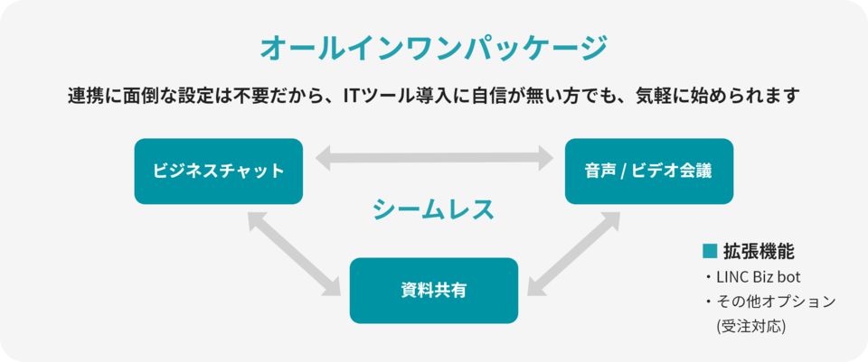 LINC Biz は ビジネスチャット とオンライン会議ツールを組み合わせたビジネスコミュニケーションのためのツールです。