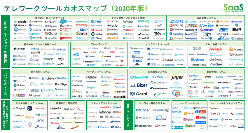 テレワーク向けツールのカオスマップ【17分野・296サービス】
