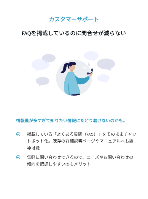 FAQに顧客からの定型的な質問を掲載しても問い合わせが減らない企業は、導入を検討してみるとよいでしょう。
