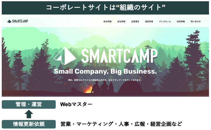 「コーポレートサイトは、特に多くの部署や担当者が関与する“組織のサイト”です。管理・運営は、企業のサイト責任者であるWebマスターが担うことになる。そもそもリソースが足りない中で、各部署からの要望に応えながら更新頻度を上げ、訪問顧客を分析していかなければならない。大きな改修であれば部署をまたいだ合意形成が必要なため、推進するスキルも問われます。古いシステムと組織運営の板ばさみになり、疲弊しているWebマスターは多いですね」(尾澤氏)