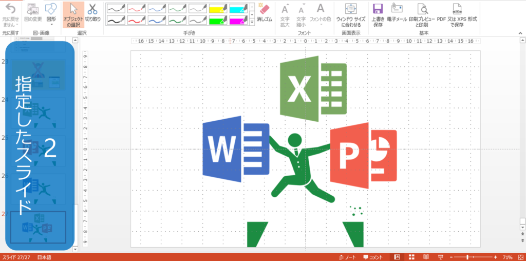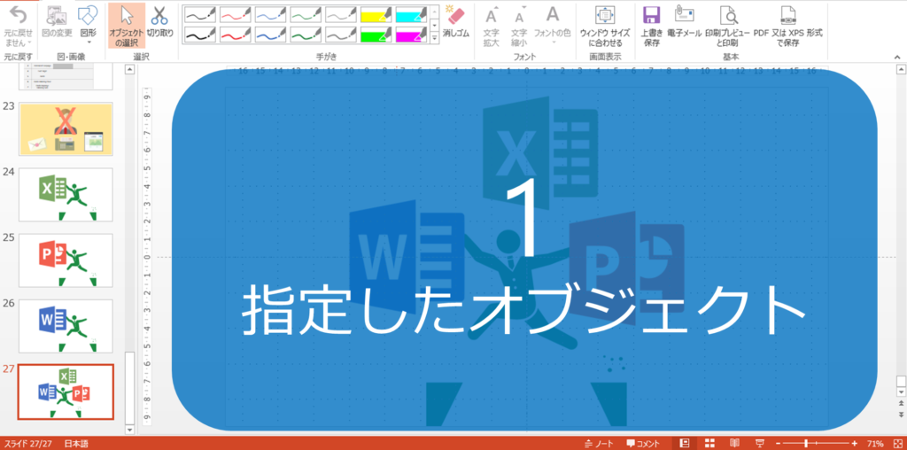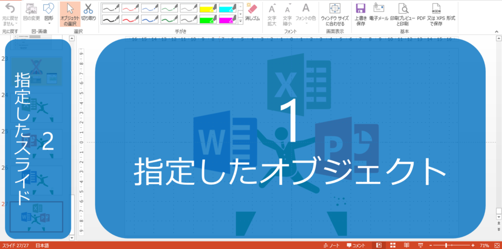 1はスライド内のあるオブジェクトを選択しているときに適用されます。
