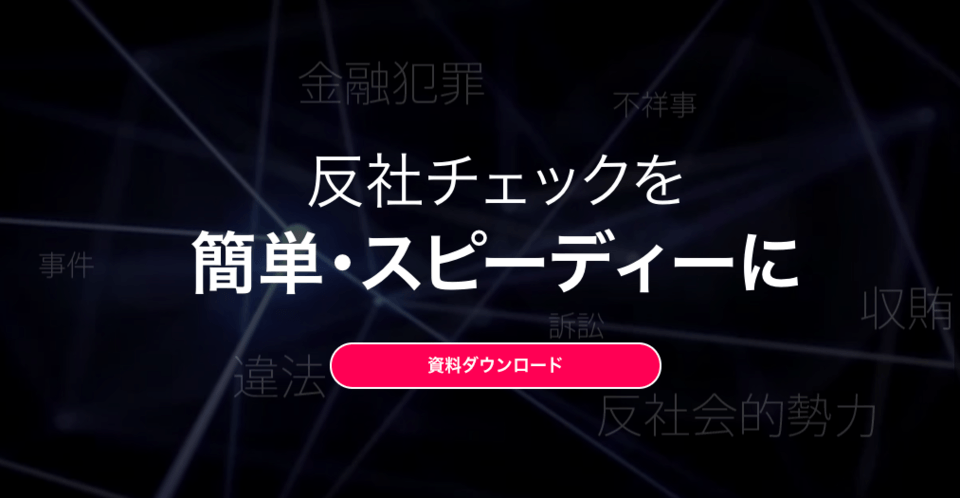 「RISK EYES」は、Webニュース記事や新聞記事といった公知情報を用いて、取引先に関するスクリーニングを行うサービスです。AI(人工知能)の技術を活用し、可能な限り不要な記事・情報を除外する機能を搭載しているため、チェックの手間と工数を削減し、簡単でスピーディな反社チェックを実現します。