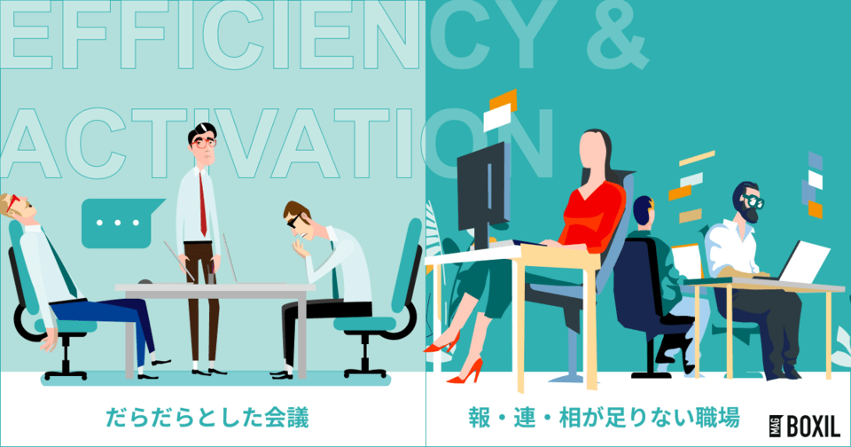 だらだらと無意味なやりとりや会議をしていても仕方ありませんし(効率化)、かといって「報・連・相」がきちんとされない状況も困りますよね(活性化)。