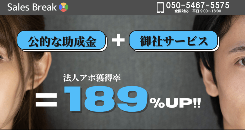 「 Sales Break 」は、営業会社がアポ獲得時、クロージング時に無料の助成金サポートを提案できるツールです。Sales Breakを運営するリアリディールでは、助成金・補助金の申請サポートを行っており、この実績により、営業会社の見込み顧客からの費用はなしで提供することが可能だという。