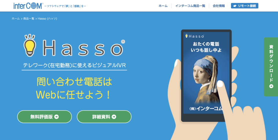 「 Hasso 」は、テレワーク(在宅勤務)で利用できるビジュアルIVRです。スマートフォンで問い合わせをした顧客に対して、スマートフォン画面上に案内メニューを表示することで、顧客は直感的にメニューを選択できます。FAQページや専用窓口、折り返し電話予約など、最適なチャネルへのスムーズな誘導が可能です。