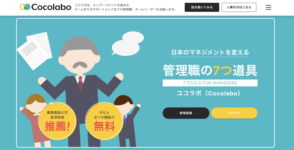 「管理職の7つ道具~ココラボ~」は、管理職の方々が少しでも楽にマネジメントができるように“武器を持つ”ということをコンセプトに生まれた実行支援ポータルサイトです。特に人・組織面を支援するために最適な道具(手法、思考法)を用いて、メンバーのエンゲージメントを高め、一人ひとりが働きがいを持てる良いチーム作りができることをサポートします。