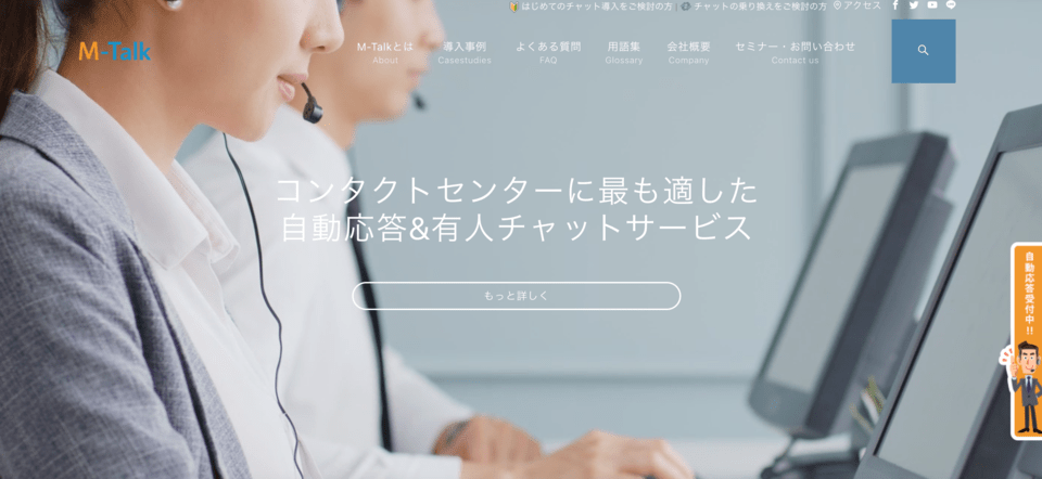 「M-Talk」は、コンタクトセンター運用仕様をすべて網羅した、ハイブリットサポートチャットシステムです。WebサイトだけではなくLINEや自社アプリをインターフェースとして統合運用が可能。また、チャットボット連携や、ドキュメントやスタンプの活用、そしてさまざまなシステムとの連携により「コンタクトセンター運用のハイブリット化」を実現します。