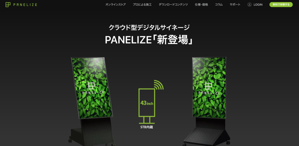 「PANELIZE(パネライズ)」は、クラウド型デジタルサイネージです。クラウドに必要なWi-Fiや受信機も内部に搭載。オンラインでつながっているため複数のPANELIZEを一括で操作できます。デジタルサイネージに必要なディスプレイやコンテンツ配信用ソフトウェア、業種に合わせたコンテンツまで、すべてを1セットで提供。