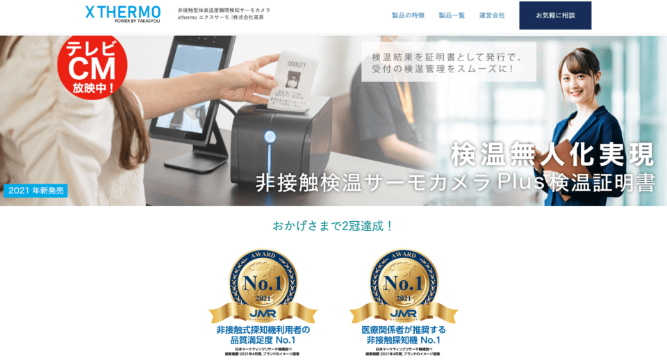 「X THERMO-DS(エクスサーモー デーエス)」は、非接触検温サーモカメラ。マスクやサングラスをしていても検温可能で、感染予防対策機器として大手企業、商業施設、医療施設、文教施設などへの導入が進められています。