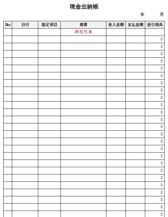 | 差引残高 | 取引後の現金の残高を計算して記載します。 |