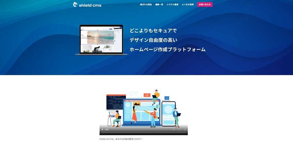 「shield cms」は、セキュアなホームページが簡単に作成できるプラットフォームです。豊富なデザインパーツを組み合わせて配置するだけの「見たまま編集」なら初心者でも安心。もちろん、HTMLやcssによるカスタマイズも可能です。また、「shield cms」には改ざん対策ソフト「WebARGUS」を搭載。サイバー攻撃によるページの改ざんにも自動で対応します。