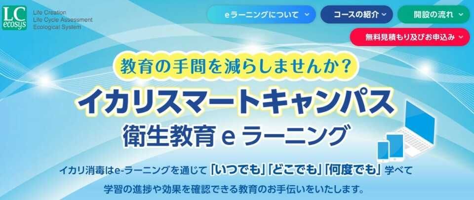 「イカリスマートキャンパス」 は、イカリ消毒株が提供する衛生教育用のeラーニングシステムです。食品工場や飲食チェーン企業など、食品の安全性を確保しなければならない企業の現場教育に活用できます。