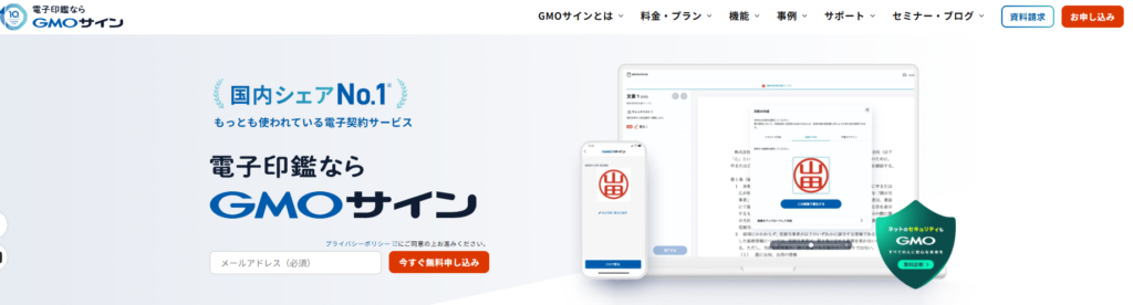 ※1、※2、※3 GMOグローバルサイン・ホールディングス「電子契約なら電子印鑑GMOサイン|国内シェアNo.1の電子契約サービス 」(2026年4月3日閲覧)