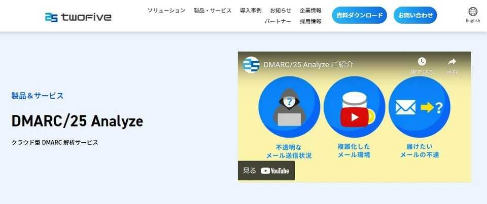 「DMARC/25 Analyze」 は、近年急増しているなりすましメールを分析できるクラウド型サービスです。