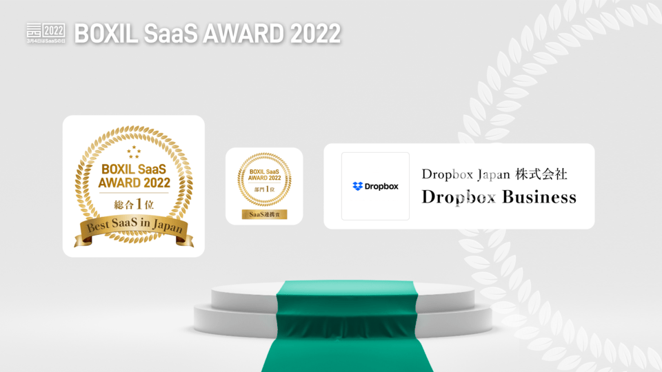 受賞企業:Dropbox Japan 株式会社Dropbox Businessは、ユーザーに高い支持を誇るDropboxに、企業が必要とするセキュリティや管理機能を充実させたサービスです。高い利便性(直感的なUI・マルチデバイス対応・デスクトップアプリ)、圧倒的なパフォーマンス、高度なセキュリティ機能を兼ね備え、世界で500,000社以上に利用されている製品です。日本でもユーザー企業が急速に拡大中のサービスです。