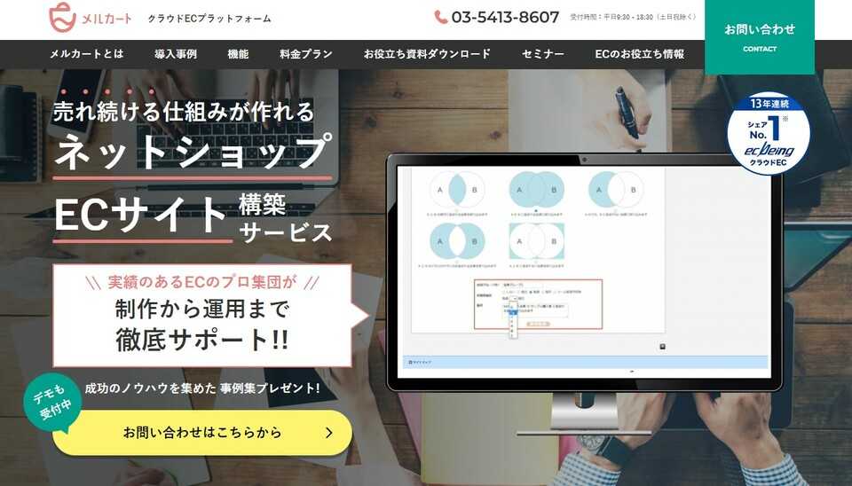 メルカートでは、業界シェアナンバーワンのECサイト構築パッケージecbeingをベースにクラウドECプラットフォームを開発。多くの企業が利用しているECサイトのパッケージソフトウェアを、低価格で利用できます。