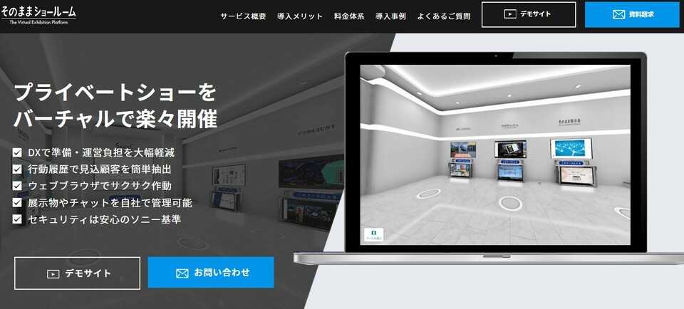 「そのままショールーム」は、営業イベントやプライベートショーをバーチャルな空間で再現でき、そのまま商談まで行えるプラットフォームです。