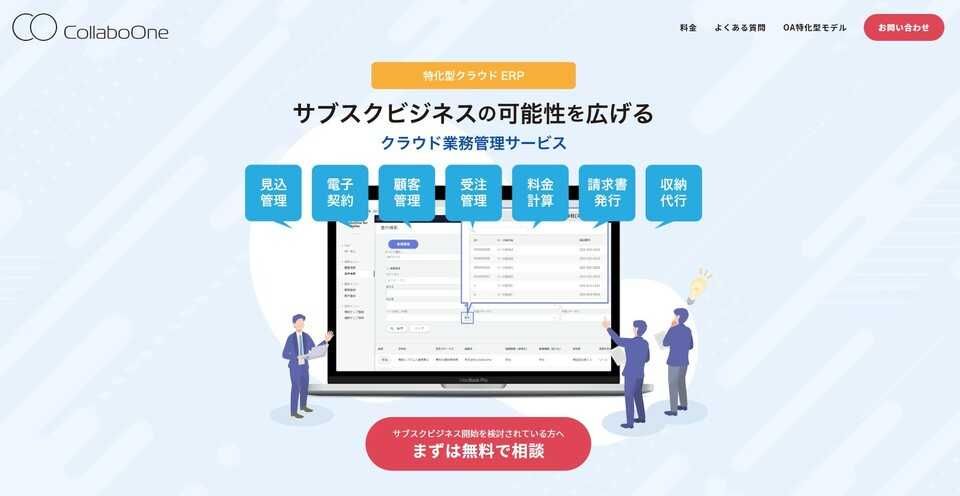 コラボワンでは、顧客や受発注情報の管理、料金計算、請求書の発行、請求、決済代行までサポート。すでにサブスクリプションサービスを提供する企業だけでなく、これから導入を検討している企業も利用できます。