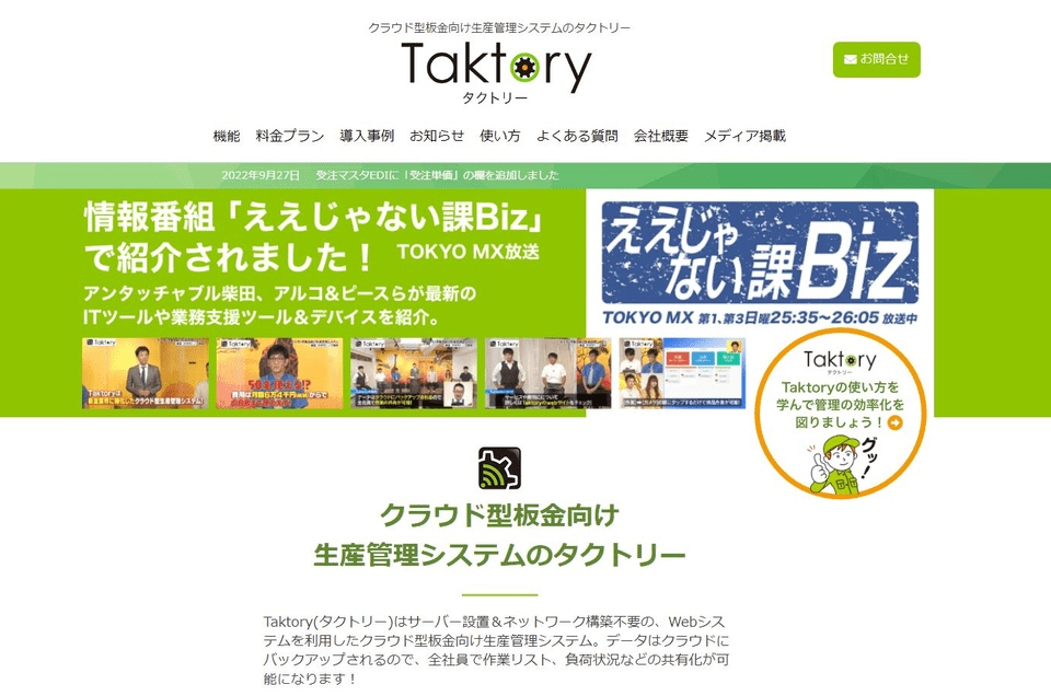 「Taktory」は、板金業界に特化したクラウド型の生産管理システムです。