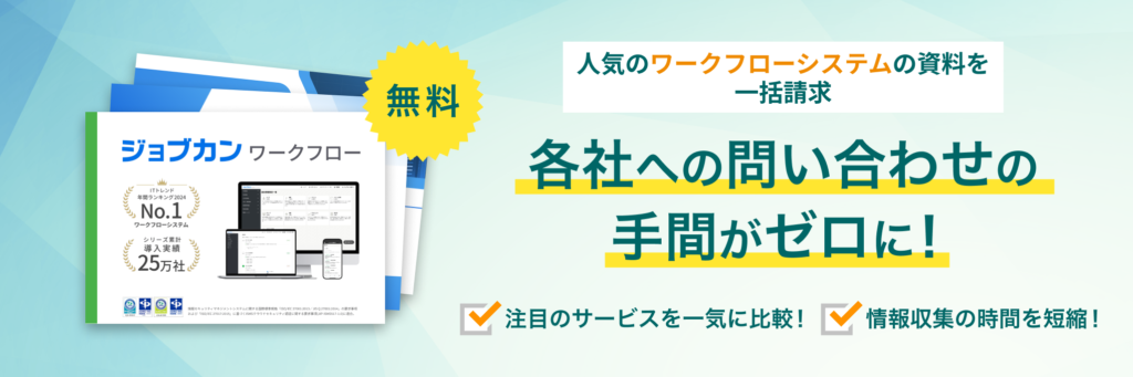 ワークフローシステムはサービスによって料金や機能が異なります。サービス選定で失敗しないためには、各サービスの情報収集を念入りに行い、料金や機能、特徴を比較することが重要です。まずは、これまで紹介した選び方を参考に、『比較表』を使って自社に合うサービスを絞り込んでみましょう。
