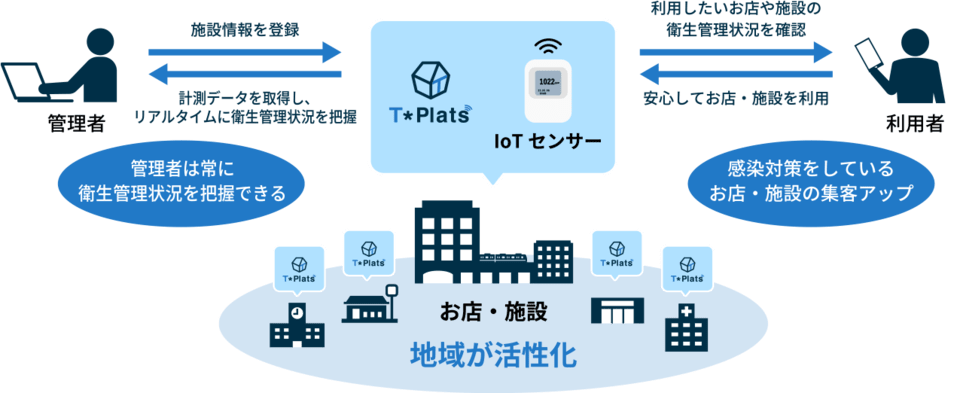 「T*Plats」とは、IoTセンサーで計測した客観的なデータをもとに、お店や施設の衛生管理状況を可視化する、日立が開発・提供するサービスだ。