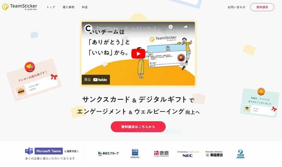 ギフト付きのサンクスカードを通して、喜びの連鎖とコミュニケーションの活性化を生むTeamStickerは、リモートワークでのコミュニケーションに課題を抱えている企業にもおすすめです。