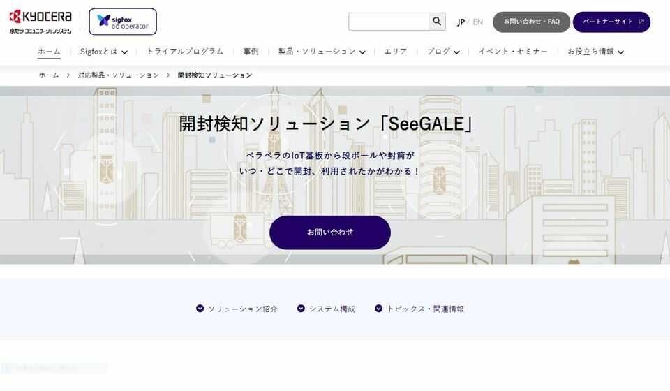 SeeGALEを荷物に貼り付けることで、取引先に配送した荷物が今どこにあるのか、いつ開封されたのかがすぐにわかるようになります。SeeGALEには通信機能、電池、開封を検知する回路を搭載。