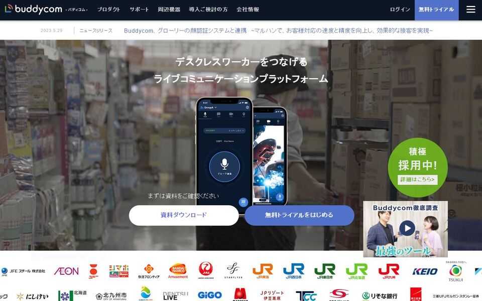 「Buddycom」は、デスクワーカーをつなげるライブコミュニケーションプラットフォームです。